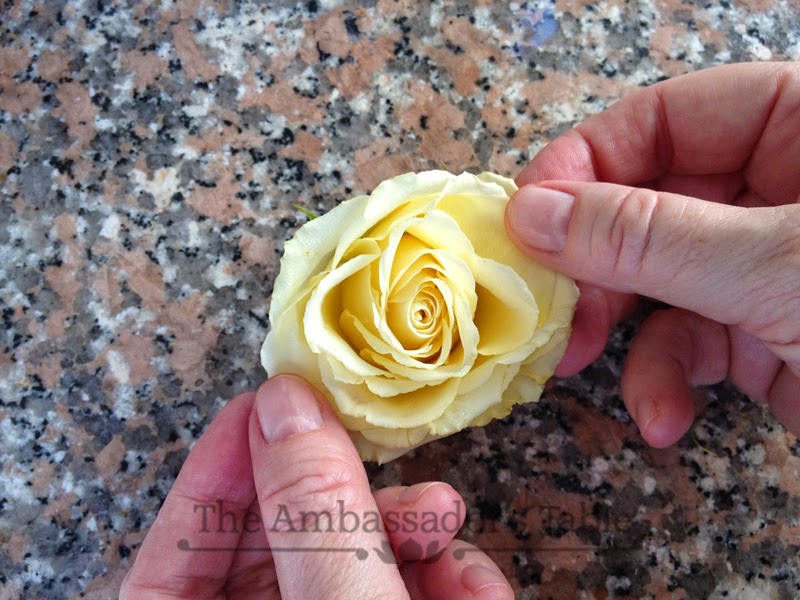 quite opened, open them the delicately, rose blossoms float better than rose buds.
